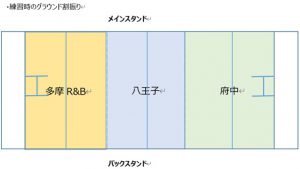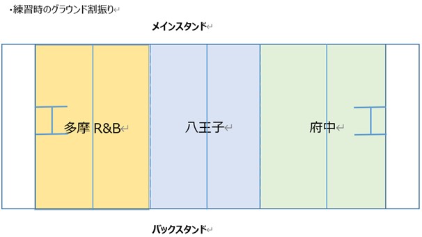 13:10 アップ開始 ※グラウンド割振りは下記参照